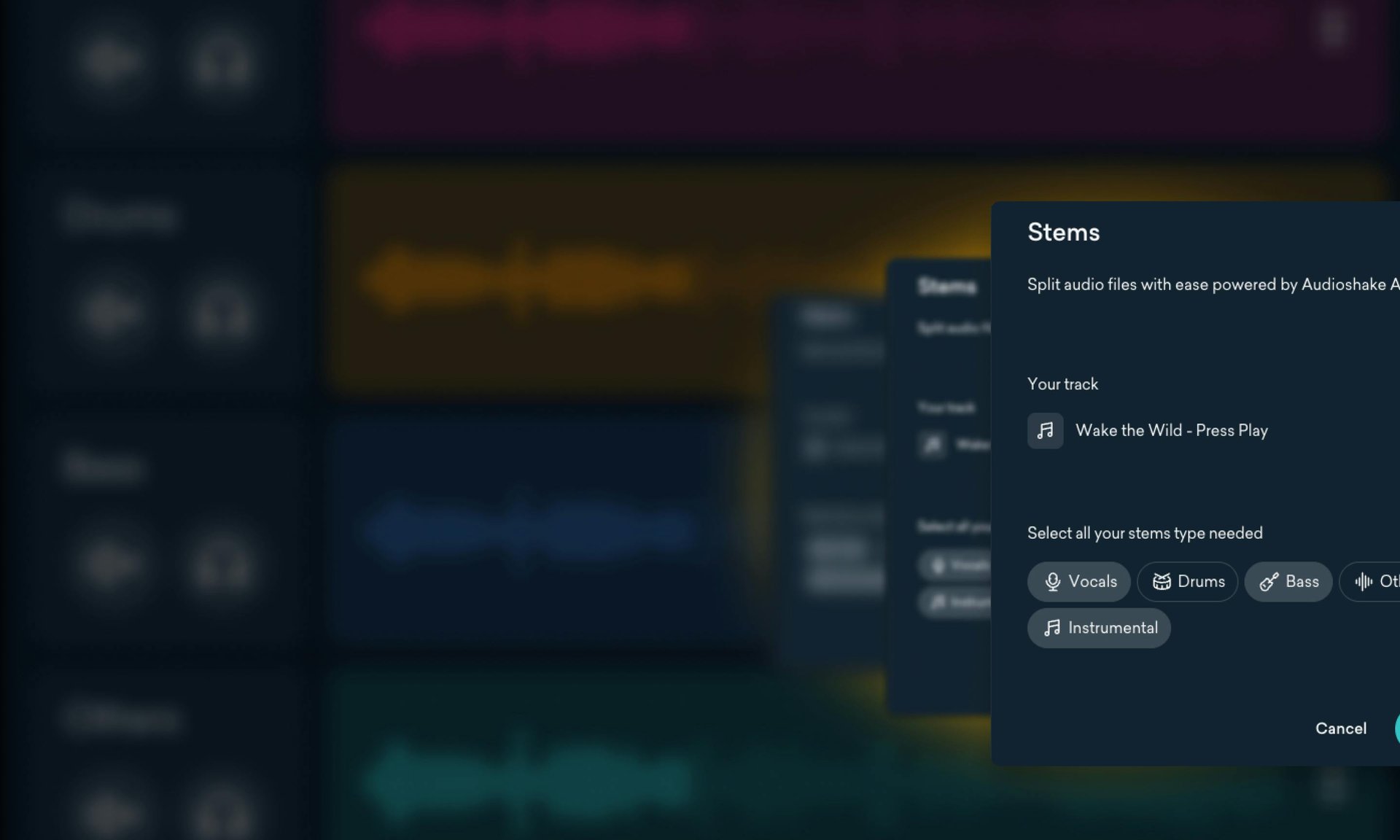 Angetrieben von der preisgekrönten KI von Audioshake, der gleichen Technologie, der Top-Profis und große Labels vertrauen, ermöglicht Ihnen diese fortschrittliche Funktion, Vocals, Drums, Bass und mehr in separate Stem-Dateien zu extrahieren.