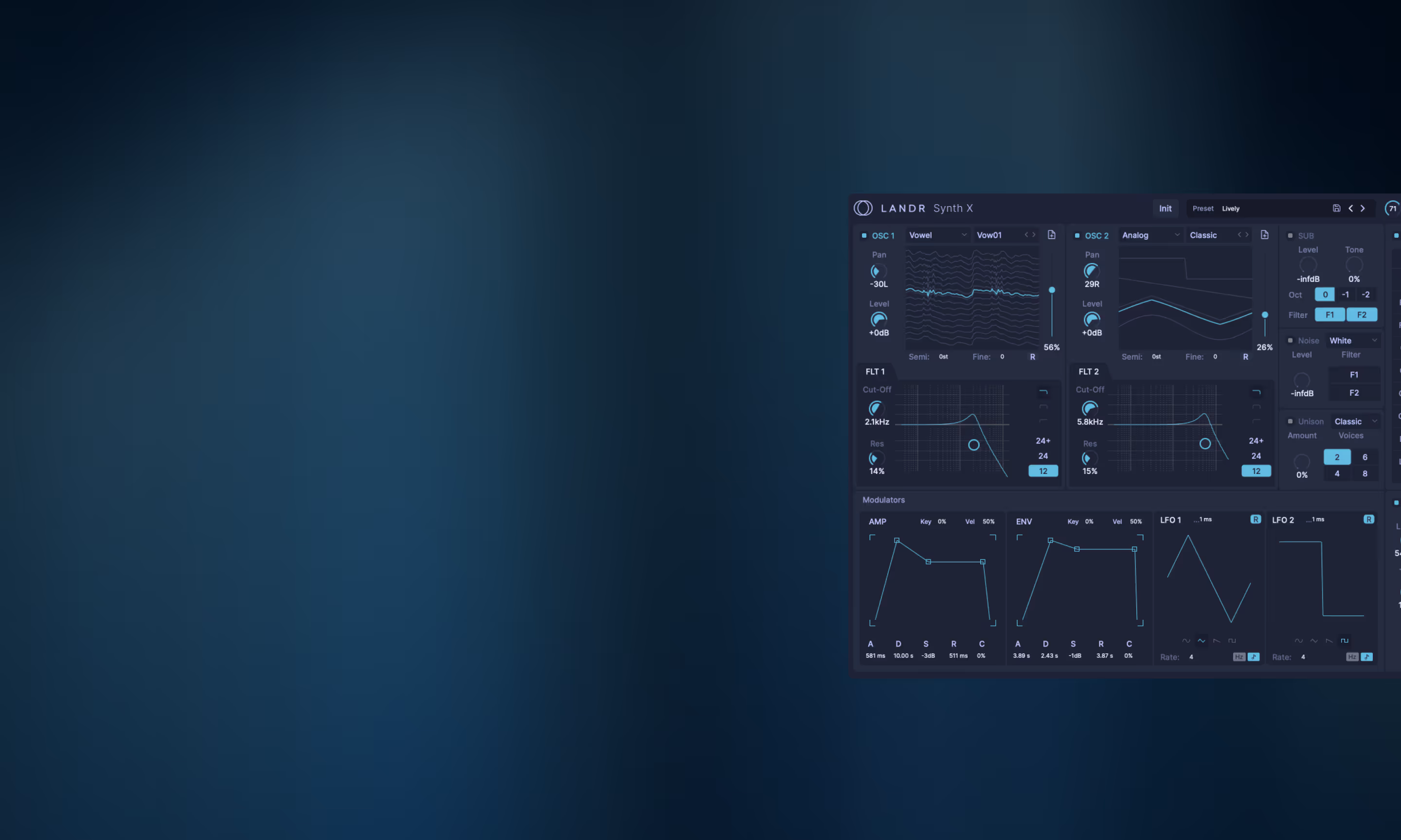 Crea sonidos diversos y expresivos con wavetable, ADSR, LFO y modulación mejorados