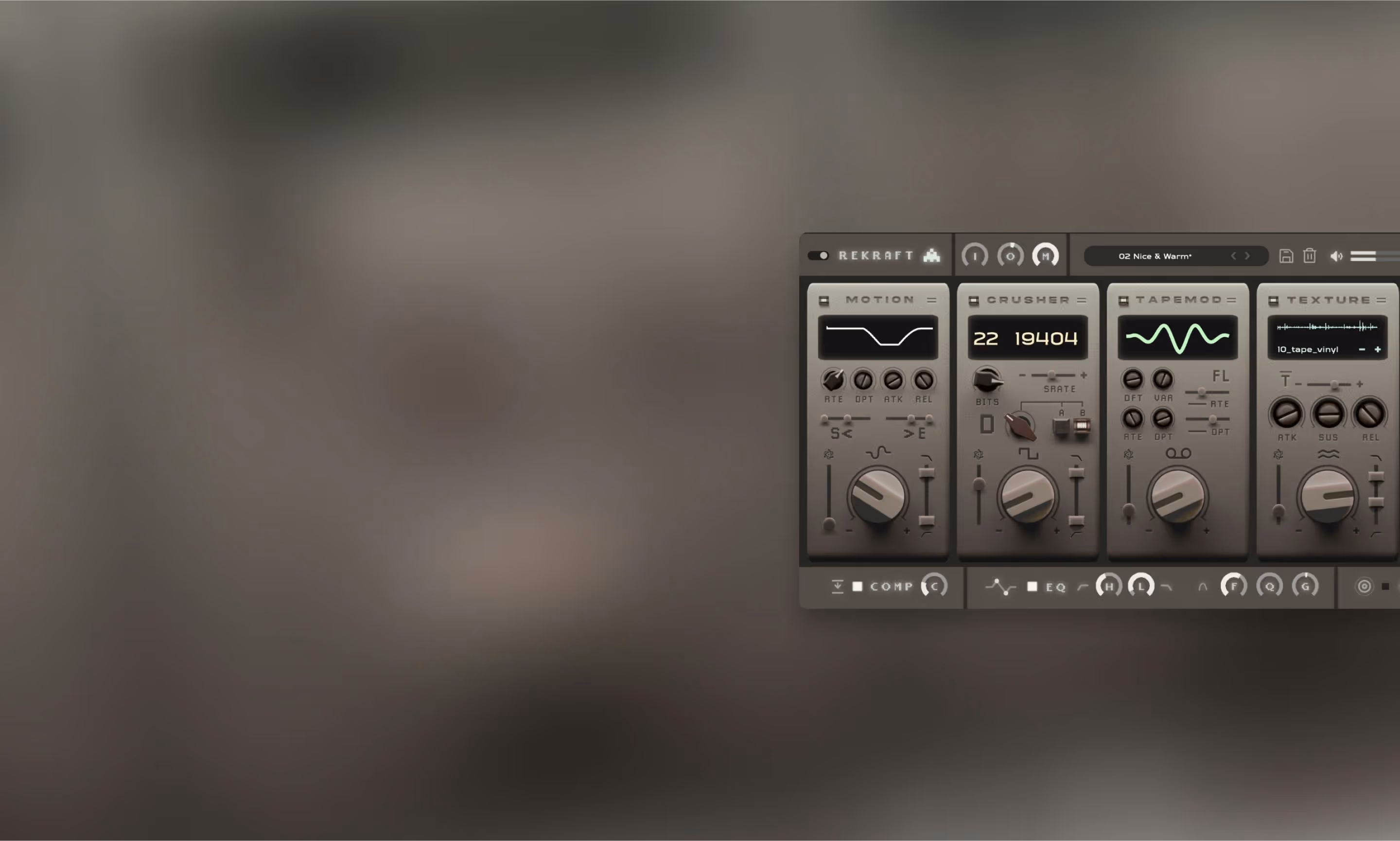 Rekraft es un motor lo-fi modular que infunde a tus tracks calidez y carácter retro. Con módulos de efectos intercambiables y herramientas de mezcla integradas, es tu plugin ideal para texturas polvorientas, oníricas y bellamente rotas.