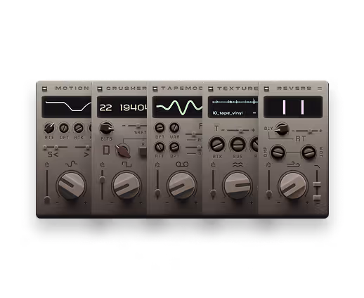 Elige entre los módulos Texture, Crusher, Motion, Reverb y TapeMod para añadir ruido de vinilo, bitcrushing, oscilación de cinta, modulación y espacio. Reordénalos y ajústalos para obtener combinaciones creativas infinitas.