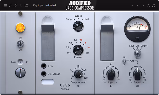 クラシックなドイツ製U73bコンプレッサー/リミッターの本格的なエミュレーションで、ヴィンテージなパンチとクリアさを追加。ボーカル、ドラムなどに最適です。