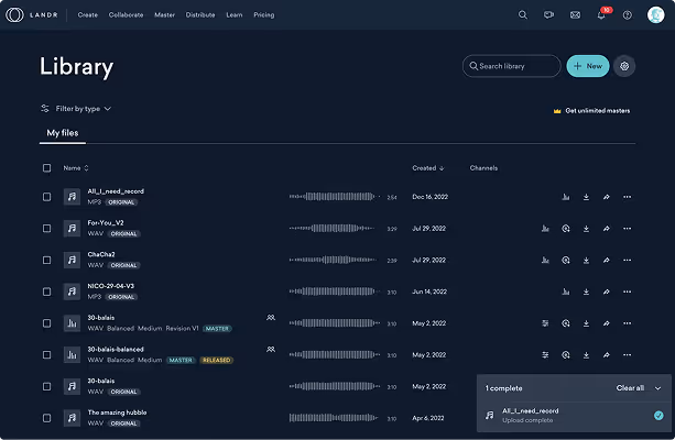 DAW内で高速かつプロレベルのAIマスタリングを使用してサウンドを形成。無制限のマスタリング、リビジョン、パーソナライゼーションコントロールを利用できます。