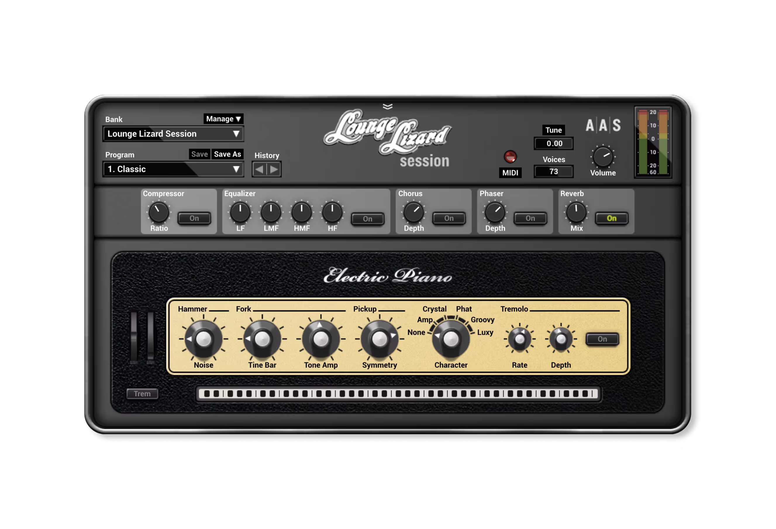 16種類のプリセットとトレモロ、コーラス、リバーブなどの内蔵エフェクトを備えた、使いやすいエミュレーターで、クラシックなエレクトリックピアノサウンドをトラックに追加しよう。