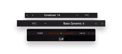 直感的な学習機能で理想的なスレッショルドを設定するスマートゲートと、ダイナミクスを抑えるコンプレッサーを内蔵し、サウンドを洗練させます。 内蔵チューナーでピッチを完璧に保ち、IRローダーでカスタムインパルスレスポンスをインポートして、さらなるトーンの柔軟性を実現できます。