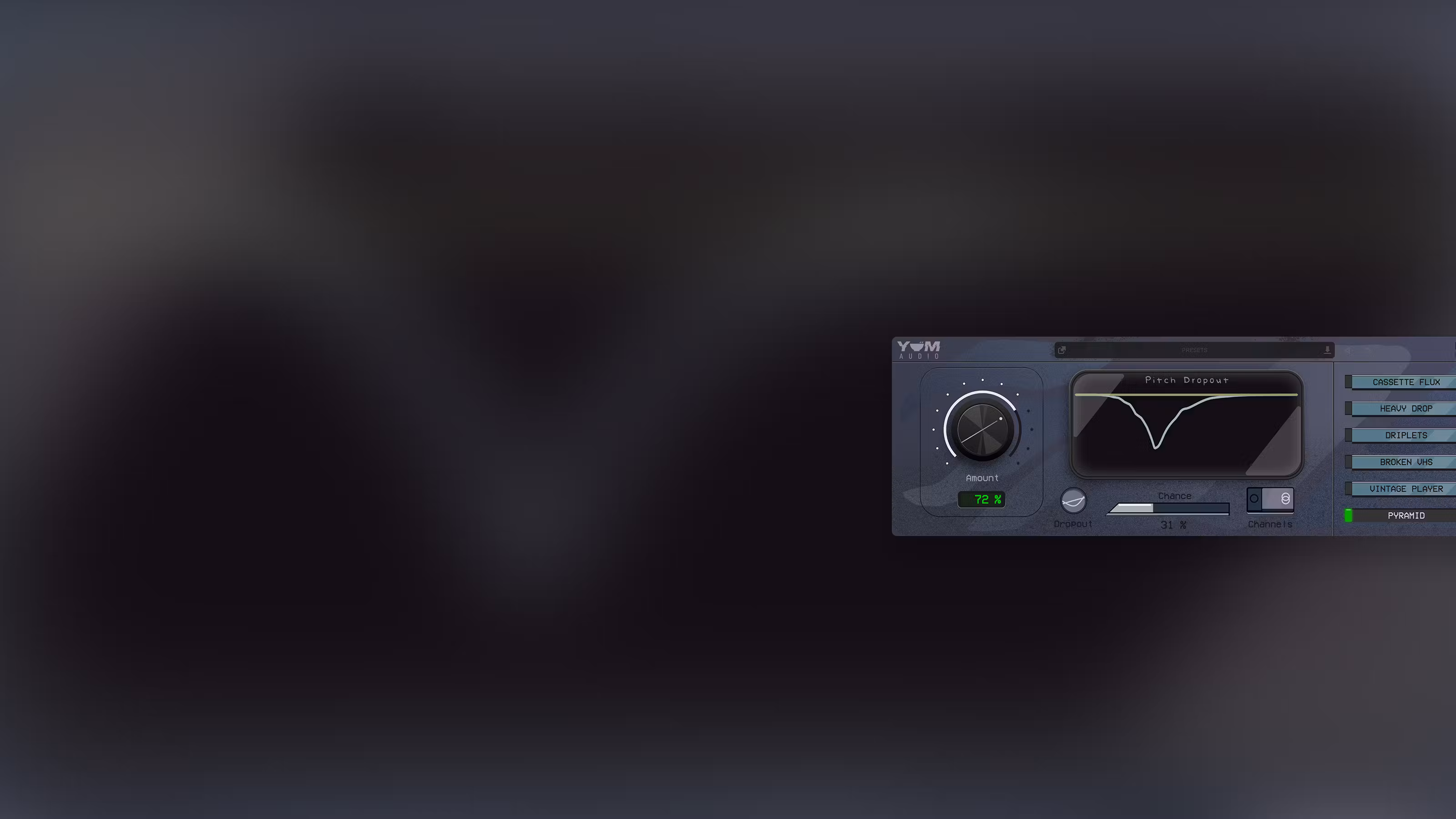 Pitch Dropout features six different modes, each will give the dropouts a different shape and chance behaviour.