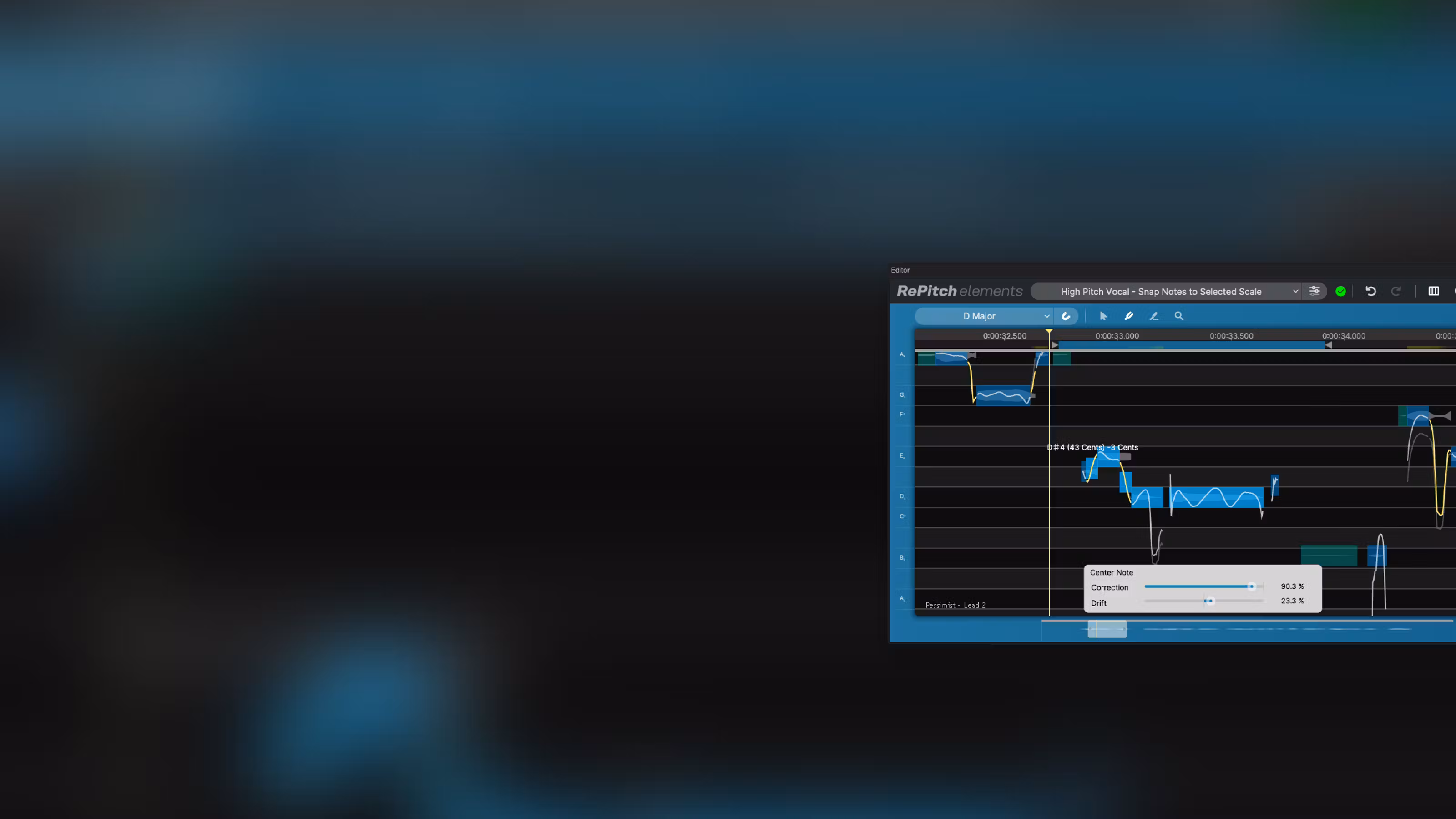 Once your vocal is successfully loaded, RePitch will analyse pitches within the signal and suggest the most likely scale. This makes it possible to snap notes in your performance to the detected scale making tuning faster and easier than ever. It's also possible to manually set the scale too.