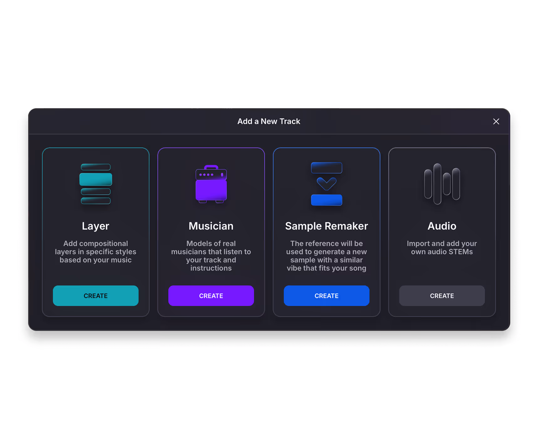 Impulsionado pela tecnologia de geração de arquivos abertos da AIODE, líder do setor, LANDR Layers usa modelos de IA movidos por artistas para gerar arquivos abertos convincentes com som profissional.